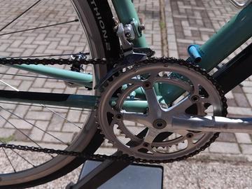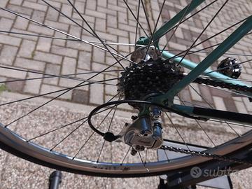 Vendo splendida Bianchi Reparto Corse metà anni ’90 in acciaio Dedacciai Zero Tre (0.3) con tubo obliquo ovalizzato, colore celeste originale. Taglia 57 (ideale per persone 175–185 cm). La bici è in ottime condizioni generali, con normali segni d’uso ma nessun danno strutturale. Telaio sano, vernice originale, forcella in ottimo stato. Montaggio: - Gruppo Campagnolo Mirage 8 velocità - Comandi Ergopower - Guarnitura 52/39 - Freni Campagnolo - Ruote da corsa in ottime condizioni - Sella Selle Italia originale disponibile - Pedali shimano originali disponibili - Accessori Pompa Imperial Bici pronta all’uso, perfetta per chi cerca un acciaio Reparto Corse autentico, leggero e scorrevole. Prezzo: 550 € trattabili Zona: San Felice sul Panaro (MO) Disponibile per visione e prova senza impegno.
