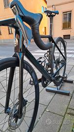 Anno 2023, misura 53, Shimano Ultegra Di2 11 velocità, guarnitura OMC compatta 50/34 lunghezza 172 5, cassetta 11/32, ruote Fulcrum Rancing quattro alluminio, curva integrata Alanera 110/400.