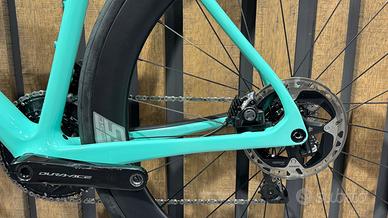 Telaio in ottimo stato, qualche lieve riga sulle pedivelle Componenti Forcella : Bianchi Full Carbon w/Bianchi CV, 1.5" integrated head, internal cable routing for disc brake, flat mount caliper, thru axle 12x100mm Materiale della forcella : carbon Deragliatore anteriore : Shimano Dura-Ace Deragliatore posteriore : Shimano Dura-Ace 12v Pedivella : Shimano Dura-Ace 170mm Ruote : Vision SC40 | 55 TLR Carbon Pneumatici : Pirelli Reggisella : Reparto Corse by FSA K-Force Light SB25, UD Carbon Monocoque, clamp type 2-Bolt Head "MTC", Setback 25 mm, Length 350mm, 27.2mm, Di2 Battery compatible Attacchi manubrio : FSA Manubrio : Reparto Corse by FSA Compact HB-RK-222S/CCH/Di2, UD Weave Carbon, diam. 31.8mm, drop 125mm, reach 80mm, 4º Outward Bend, Size: 400mm-47/50cm, 420mm-53/57cm, 440mm-59/61cm Pacco pignoni : Shimano Dura-Ace 12v (B27)