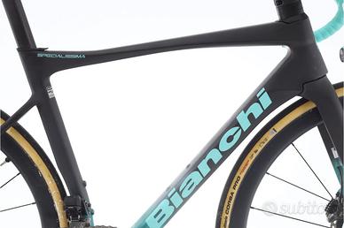 Bici ricondizionata | 1 anno di garanzia | Foto reali | Disponibilità immediata | Finanziamento da 499 € in 12 mesi | Spedizione in tutta Italia. · Prezzo listino: 13500 € · Scontata su zyclora.it: 5999 € Bicicletta da corsa - Telaio in Carbonio - Taglia 54 - Deragliatore: Shimano Dura-Ace Di2 - 12 Velocità velocità - Cassetta: 11-30-T - Leve del cambio: Shimano Dura-Ace Di2 - Pedivelle: FSA KFL STE - Corone: 54-40-T - Freni: Shimano Dura-Ace - Ruote: Vision - Materiale della potenza: Carbonio - Manubrio: - Reggisella: Carbonio Maggiori informazioni sulla bici La Bianchi Specialissima è il gioiello della corona per gli amanti del ciclismo su strada. Con il suo telaio ultraleggero in carbonio e un design aerodinamico, questa bicicletta non si distingue solo per la sua estetica, ma anche per le sue prestazioni eccezionali. Dotata del sistema Shimano Dura-Ace Di2, offre cambi precisi e rapidi, garantendo un'esperienza di guida senza pari. I freni a disco forniscono una potenza di frenata superiore in qualsiasi condizione climatica. La Specialissima è la scelta perfetta per i ciclisti che cercano velocità, agilità e un tocco di eleganza in ogni percorso. Scopri l'eccellenza in ogni pedalata! Esaminamo ogni bici in dettaglio · Controlliamo l'integrità strutturale del telaio e delle ruote. · Controlliamo il funzionamento delle sospensioni, della trasmissione e dei freni. · Esaminiamo tutti gli articoli soggetti a usura e modifichiamo quelli necessari per garantire il corretto funzionamento. · Analizziamo il funzionamento del motore, della batteria e del display, nel caso delle bici elettriche. · Effettuiamo la lubrificazione completa e il serraggio di tutte le viti della bici.