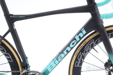 La Bianchi Specialissima è il gioiello della corona per gli amanti del ciclismo su strada. Con il suo telaio ultraleggero in carbonio e un design aerodinamico, questa bicicletta non si distingue solo per la sua estetica, ma anche per le sue prestazioni eccezionali. Dotata del sistema Shimano Dura-Ace Di2, offre cambi precisi e rapidi, garantendo un'esperienza di guida senza pari. I freni a disco forniscono una potenza di frenata superiore in qualsiasi condizione climatica. Ideale per ciclisti che cercano velocità e agilità, la Bianchi Specialissima è la scelta perfetta per conquistare qualsiasi percorso.