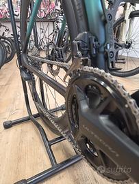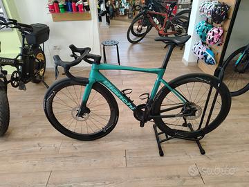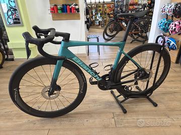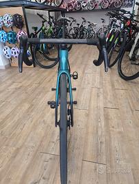 FINANZIAMENTO TASSO ZERO SPEDIZIONE IN TUTTA ITALIA! GARANZIA ANCORA DA ATTIVARE! Telaio Kit Telaio Specialissima PRO carbon HM con Bianchi CV System, solo gruppi elettronici, passaggio cavi completamente interno, serie sterzo Acros ICR, freni direct mount, BB-PressFit 86,5x41 taglie: 47-50-53-55-57-57 Forcella Specialissima PRO full Carbon HM con CV, aero, testa integrata, disco, testa da 1,5", perno passante 12x100mm Serie sterzo Acros IS52 ICR SS cover del tubo di sterzo customizzata Specialissima Trasmissione Comandi Shimano Ultegra Di2 freni a disco idraulici, ST-R8170, BR-R8170, per dischi da 160mm rotor Cambio Shimano Ultegra Di2 12sp, RD-R8150 Deragliatore Shimano, FD-R8150, Ultegra Di2, brazed-on, down swing, corona 50-54T, per 12 velocità Guarnitura Shimano, Ultegra 12v, FC-R8100, 4iiii precision 3+ power meter, 52x36T, Lunghezza Pedivella: 165 mm (47-50 cm), 170 mm (53-55 cm), 172.5 mm (57-59 cm) Movimento Centrale Shimano SM-BB72-41B, press fit per road Catena Shimano Ultegra 12 sp CN-M8100 Pacco pignoni Shimano Ultegra, CS-R8100,Ultegra 12sp, 11-12-13-14-15-16-17-19-21-24-27-30T Freni Freni Shimano BR-R8170 freni a disco idraulici Inclusi nei comandi Dischi Shimano RT-CL800 center lock type con Ice Tech, 160mm anteriore e posteriore Ruote Ruote Velomann Plutonium, cerchio in Carbonio, Profilo 50 mm, 700x21c, 24h, Corpetto HG11 Pneumatici Pirelli P ZERO™ Race SL TLR , 28-622, 120TPI Manubrio Attacco manubrio Manubrio integrato Reparto Corse, materiale Carbonio, per sistema Acros ICR drop 125 mm, reach 80 mm, lunghezza: 90/380 (47-50cm); 100/400 (53cm); 110/400 (55-57cm); 120/420 (59cm) Piega Inclusa nell'attacco manubrio Nastro / Manopole / Estensioni Velo in soffice microfibra nero Sella Reggisella Specialissima Full Carbon Aero special dimension, offset 20mm, lunghezza: 280mm-47cm, 300mm-50/53cm, 350mm-55/59cm Sella Velomann Mitora 139 Hyper Carbon, scocca in nylon carbonio, rail in carbonio, Lunghezza: 250mm, Larghezza: 139mm, Peso: 180g ± 2