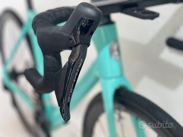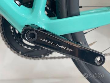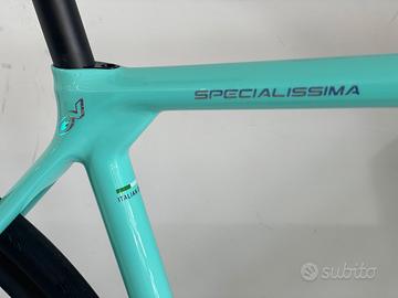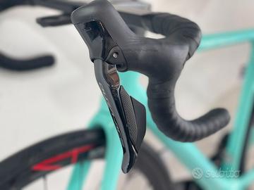 USATO SELEZIONATO! Telaio: Specialissima Disc carbon w/Bianchi CV. 12x142mm Forcella: Bianchi Full Carbon w/Bianchi CV, 12x100mm Serie sterzo: FSA NO.55R 1.5"/ACR/Bianchi Cambio: Shimano Dura Ace Di2 12v Comandi cambio: Shimano Dura Ace Di2 2x12v Deragliatore: Shimano Dura Ace Di2 Guarnitura: Shimano Dura Ace 170mm 50/34 Movimento centrale: Shimano SM-BB92-41B PressFit Cassetta pignoni: Shimano Dura Ace 11-30 Freni: Shimano Dura Ace Disc Rotori Shimano RT-MT900 center lock, diam.160/140mm Ruote: Fulcrum R400 Disc Copertone ant.: Continental GP5000 S TR 700x28 Copertone post.: Continental GP5000 S TR 700x28 Manubrio: DEDA Alanera 100x420 Reggisella: Reparto Corse by FSA K-Force Light SB25, UD Carbon 27,2mm Sella: Prologo Scratch M5 Pas Carbon Pedali: Non inclusi Peso: Kg 7,250 Misura53 Anno: 2023 Garanzia: Telaio 24mesi, Componenti 12 mesi. Spedizione Italia Gratis! Possibilità di finanziamento da 6 a 60 mesi...