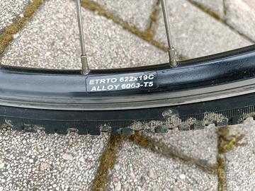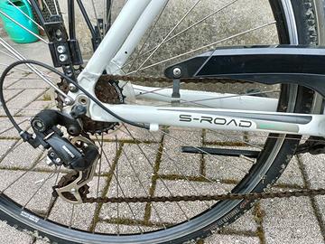 bici funzionante, molto leggera.ha qualche graffietto e qualche imperfezione,ma non precludono la sua funzionalità.ruote a sgancio rapido.molto veloce