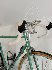 Bici d’epoca bianchi sprint taglia M, la bici è stata restaurata in ogni sua minima parte, cuscinetti sostituiti, cromature lucidate a mano, riverniciata doppio strato con adesivi sotto trasparente, nastri, guaine, copertoni, camere e sella nuovi, porta borraccia eroica originale, borsello in pelle sotto sella con attrezzi, tutto si presenta come nel 1975. La bici è un pezzo di storia appesa nel mio salotto e mai utilizzata dopo il restauro, perfetta per chi volesse partecipare a manifestazioni come la matta o l’eroica. PREZZO ASSOLUTAMENTE NON TRATTABILE E NON SCAMBIO.