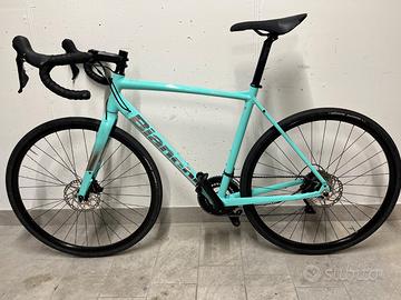 Bianchi via Nirone 7. Telaio in alluminio Taglia 57, con forcella in carbonio. Cambio Shimano 105. Freni a disco. Acquisto fine 2024, usata una stagione (primavera estate). Colore celeste Bianchi. nessun punto ruggine. Appena eseguita manutenzione e revisione. Catena e freni non necessitano di sostituzione. Sempre tenuta al coperto. Mai incidentata. Pedali look KEO classic 3 inclusi.