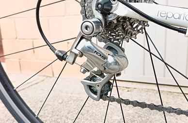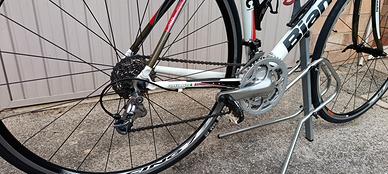 Vendo bellissima Bianchi Via Nirone 7 Alu-Hydro-Carbon (2008-2009), tenuta in modo maniacale: Telaio: Alluminio serie 7000, con tubazioni idroformate (Hydroforming) per ottimizzare la rigidità e il peso. Carro Posteriore: La particolarità di questa versione è il carro posteriore in fibra di carbonio innestato sull'alluminio (foderi superiori), progettato per smorzare le vibrazioni dell'asfalto. Forcella: Bianchi K-VID (Kevlar Vibration Isolating Device), realizzata in carbonio con inserti in Kevlar per aumentare l'assorbimento degli urti senza perdere precisione di guida. Geometria C2C: Rispetto alle bici da corsa pure, ha un tubo di sterzo più alto e un interasse leggermente più lungo per una posizione di guida meno estrema e più comoda. La bici è perfetta e monta la seguente componentistica: Comandi: Shimano Tiagra serie 4500 - 9v Guarnitura: Shimano Tiagra 4600 ( 50/34) Cambio Posteriore: Shimano 105 RD-5700 (nativo 10 v) montato con pacco pignoni 9v Ruote: Fulcrum Racing Aluminium Alloy 622x15C Freni: Shimano Tiagra serie 4500