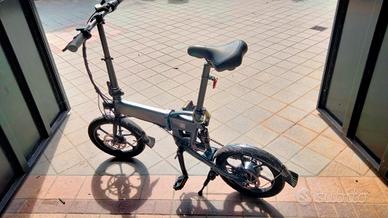 bicicletta elettrica con acceleratore, pieghevole adatta per bagagliaio vettura, semi nuova con pochissimi km. Sei ( 6 ) cambi, freni a disco, luce anteriore e posteriore.