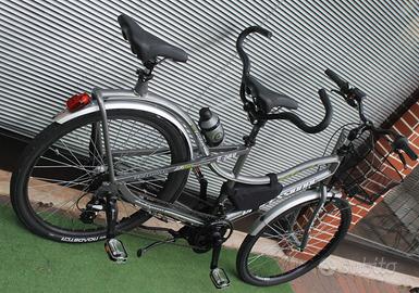 TANDEM BIBICI NUOVO COMPATTO, SI CARICA FACILMENTE IN AUTO PER LA SUA DIMENSIONE RIDOTTA) CON MOTORE CENTRALE 250W (80 NM RAPPORTO DI COPPIA), IL SENSORE DI PEDALATA ATTIVA IL MOTORE CON IL MOVIMENTO DEI PEDALI E L'AIUTO E' FORNITO COSTANTEMENTE.