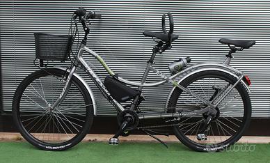 CAMBIO SHIMANO 7 VELOCITA', FRENI V-BRAKE PER E-BIKE, CON FANALI ALIMENTATI DALLA BATTERIA PER UNA MASSIMA VISIBILITA' NOTTURNA.