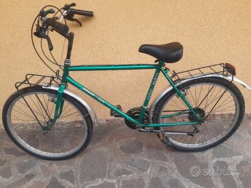 Bicicletta mtb DELTABIKE DONNA blu, 3 rapporti ant., 6 rapporti post., copertoni buoni misure: 26x1,50, freni e sella buoni, portapacchi con catarifrangente, cavalletto, campanello, catarifrangenti laterali sulle ruote, altezza sella regolabile a leva, parafanghi. Bici ibrida uomo verde metallizzato, 3 rapporti ant., 6 rapporti post., copertoni buoni misure: 28x1,50, freni e sella buoni, portapacchi con catarifrangente, portapacchi ant., cavalletto, sella buona regolabile a leva, parafanghi, campanello. Ottime per scuola/università/lavoro. RITIRO IN LOCO. (Causa ingombro, mi dispiace di non poter spedire). Prezzo cadauna. Cell. 329 2599617.
