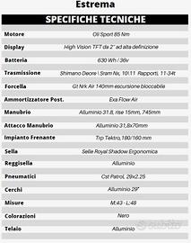 EXTREMA MTB29" H44 11V biammortizzata FOR. AMM, NERO/OPACO motore OLI SPORT 85 Nm, 36V 250W BATT 17.5 AH LCD Batteria 630 Wh / 36v Shimano Deore \ Sram NX, 10\11 Rapporti, 11-34t Forcella Gt Nrk Air 140mm escursione bloccabile tg M FATTURABILE Asti