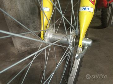 Ruota anteriore dotata di sgancio rapido (foto) e forcella ammortizzata.
