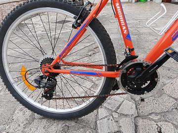 Ottima occasione, bicicletta robusta e pronta all'uso. Vendo causa inutilizzo una Mountain Bike ESPERIA modello Michigan 26( h 145-170 cm ). Condizioni pari al nuovo, perfetta meccanica. Cambio SHIMANO Tourney 6/7 Speco velocità, preciso e facile. Forcella anteriore ammortizzante per un ottimo comfort. Completa di : porta borraccia, cavalletto,campanello e lucetta post. Rossa. Pneumatici ottimi oltre il 90%. Affare del momento ed un ottimo regalo. Prezzo euro 70. Ritiro in zona Latina, consegna a mano disponibile per visione e prova.