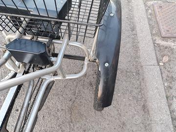 vendo bici con batteria cambiata 2 anni fa' ma usata poco e ruota motorizzata nuova. parafango posteriore danneggiato come in foto. ritiro in loco no spedizione.