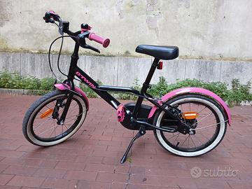 Vendo bici bambina 4-6 anni (105-120 cm.) BTWIN Spy Hero Girl 500, 16", in buone condizioni, pneumatici da 16”, telaio in acciaio, manubrio e sellino regolabili in altezza, cavalletto, campanello, luci anteriore e posteriore, parafanghi, catarifrangenti, paracatena, impianto frenante con freni a pattino, dotato di leve che ne facilitano la pressione.
