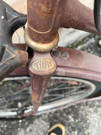 Bici con freni a bacchetta marca OLIMPYA. La bici è in buono stato e completa di tutti i pezzi. È stata pegfermente smontata nella parte posteriore per inoziare un restauro che mon ho mai fatto. Caratteristica di questa bici oltre ai freni a bacchetta e’ la presenza avanti e dietro di freni a tamburo.