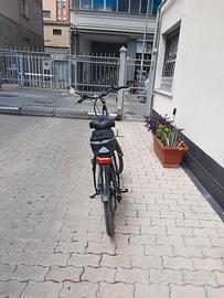 Bicicletta a pedalata assistita Legnano mod. Aria 28 Unisex colore grigio scuro spazzolato con inserti in verde acido. Cambio Shimano a 7 marce con 4 livelli di potenza gestibili dal computer sul manubrio.