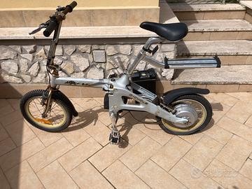 Bici a pedalata assistita da pulire. Camera aria da sostituire. Copertoni buoni.Pieghevole. Ruote da 16. Batteria presente ma sicuramente da sostituire. Se non originale, si può trovare anchea 40/50 euro. Solo ritiro a mano. Zona Cerveteri.