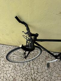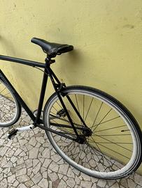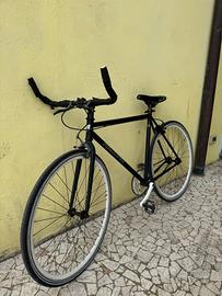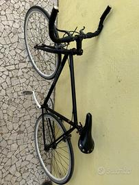 Bici a scatto fisso (fixed gear) – nera, stile urbano Vendo bicicletta a scatto fisso, ideale per chi ama una guida diretta e reattiva in città. Caratteristiche: •Telaio nero opaco, design minimal •Trasmissione fixed gear (scatto fisso) •Manubrio bullhorn per una posizione sportiva •Ruote leggere con copertoni sottili •Freni presenti (anteriore visibile) •Sella regolabile Condizioni: Buono stato generale, funzionante e pronta all’uso. Normali segni di utilizzo. Ideale per: •Uso urbano e commuting •Appassionati di fixed •Chi cerca una bici semplice, veloce e senza manutenzione complessa