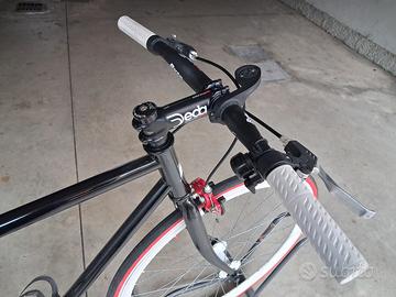 bici molto bella rifatta tutta. con due corone una a scatto fisso e girando la ruota con l'altra si pedalata normale. copertoni camere d'aria manubrio pipa corona dietro cuscinetti guarnitura . porta borraccia .tutto nuovo..vendo x inutilizzo.