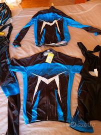Vendo abbigliamento bicicletta NUOVO, ancora con cartellini, Taglia M/L. Completo di salopette lunga e corta, maglia manica lunga e corta e casco in tinta con il completo.