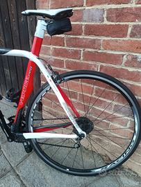 Bicicletta costruita da un artigiano di Valenza utilizzata dalla propria squadra corse, monoscocca in carbonio montata Campagnolo Record, guarnitura FSA, cerchi Fulcron, telaio tagliato su misura io sono alto 175, pronta utilizzo.