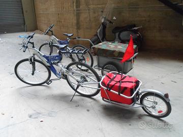 Mount-Bike ATALA /MAINO "MDX 21 SPEED" con TRAILER - VENDO - Nuova ancora con pellicola protettiva _ B/Ammortizzatata Telaio: Hi-Ten Tig 26" con Ammortizzatore Post.: registrabile A Molla D.24x160 mm Forcella: HL Ammortizzata 1" Cambio: Shimano Tourney RD-TZ50 7V Freni: Alluminio "V" Brake Comandi: Shimano SL RS 31 Revo Shifter 7 Guarnitura in lega 42-34-24 Taglia: 47" - Colore: Ultralight/Blu 21 -Velocità C O M P L E T A di: Carrello appendice portatutto staccabile con ruote cross da 20" caterifrangenti luci post. telaio tubolari in acciaio vasca/contenitore politilene capacità lt. 100 portata Kg. 60/70. Asta di aggancio con attacco a snodo La soluzione ideale, pratica e funzionale per cicloturismo . ...........Prodotto nuovo ........... info 3293529774