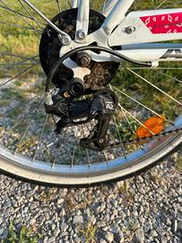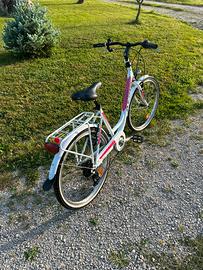Bici ragazza/bambina marca Atala in buone condizioni, ideale per passeggiate, tragitto casa-scuola o tempo libero. Telaio comodo con scavalco basso, cambio posteriore, parafanghi e portapacchi posteriore. Dotata di copricatena e cavalletto, pratica e pronta all’uso. La bici è ben tenuta e presenta normali segni di utilizzo. Perfetta per bambine/ragazze che cercano una bici comoda e facile da guidare.