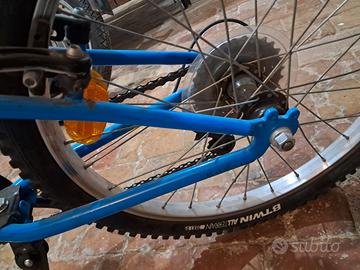 Bicicletta bambino marca B-Twin, ruote 20 pollici, valore da nuova 200 euro circa, in vendita per inutilizzo (misura ormai troppo piccola per figli cresciuti). Imoostazione mountain bike, freni V-brake (a pattino), per bambini tra 6 e 9 anni (altezza 120-135 cm). Prezzo trattabile.
