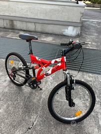 Vendo bellissima Mountain Bike per bambino/a, modello B-Twin 20FS con ruote da 20 pollici (ideale per un'altezza tra 120 e 135-140 cm circa). La bici è perfetta per le prime avventure fuori strada grazie alla sua configurazione Full Suspension (bi-ammortizzata), dotata di forcella anteriore ammortizzata e ammortizzatore posteriore regolabile per il massimo comfort su ogni terreno. Caratteristiche principali: Cambio Shimano: a 6 marce con comando a manopola, semplice e intuitivo per i più piccoli. Sicurezza: Freni V-Brake potenti e paracambio posteriore per proteggere la trasmissione in caso di urti. Accessori: Completa di cavalletto laterale, catarifrangenti sulle ruote e sella regolabile in altezza. Stato: La bicicletta è usata ma in buone condizioni generali e pronta all'uso. Disponibile per visione e prova senza impegno. Consegna a mano in zona monza