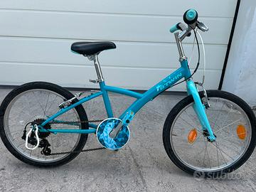 Bicicletta polivalente B'TWIN (Decathlon) con ruote da 20", indicata per bambini di altezza compresa tra 120 cm e 135 cm. Specifiche Tecniche: • Telaio: Geometria "Original" in acciaio con scavalco ribassato per agevolare la salita. • Trasmissione: Cambio posteriore a 6 velocità gestito tramite comando a manopola girevole (RevoShift). • Sistema Frenante: Freni V-Brake anteriore e posteriore in acciaio. • Ruote/Pneumatici: Cerchi in alluminio a parete singola con coperture polivalenti adatte a asfalto e sterrato leggero. • Componentistica: Sella ergonomica regolabile in altezza (Quick Release), paracatena integrale, cavalletto laterale e riflettori (catarifrangenti) installati sui raggi. Dimensioni: • Lunghezza: 140 cm. • Altezza manubrio: 80 cm. • Peso approssimativo: 12,8 kg. Per altre foto chiedere per messaggio. NON FACCIO CONSEGNE