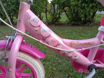 Bici da bambina, misura 12" - Flowers (3 anni) Rotelle rimovibili Sella regolabile Cestino portaoggetti La bici come si può vedere dalle foto è in ottime condizioni con piccoli segni di usura. Si preferisce consegna a mano.