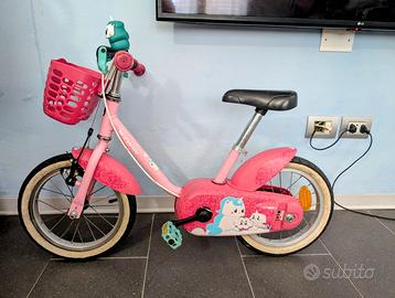Bici bambina 14" 3/6 anni, usata ma ben tenuta, completa di rotelline smontabili, compreso di kit protezione ginocchia, gomiti e polsi. Consegna a mano, no spedizione.