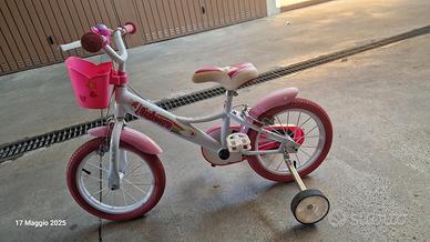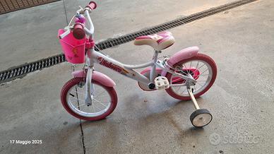 come da titolo vendo bici bambina misura 14 (3,5 anni) in perfette condizioni! ho anche la scatola e il cestino posteriore non presente in foto inquanto dava fastidio nel salire e scendere dalla bici. prezzo 50 euro