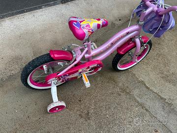 Bici bambina 3/6 anni con rotelle smontabili e portapacchi Nuova