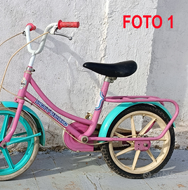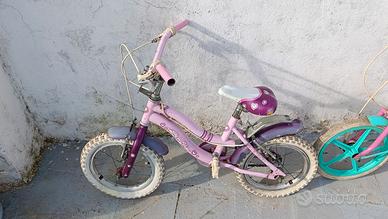 Vendo in blocco due bici da bambina con raggi da 14. Le bici sono da restaurare. Bici FOTO 1, manca pedale sinistro, bici FOTO 2 manca manicotti manubrio e carter copricatena.