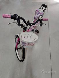 Bici per bambina con disegnati dei fiori. Dotata di cestino anteriore e cambio Shimano. Per bambine dagli 8 ai 10 anni. Ha un raggio di 20 cm, mentre il diametro del pneumatico misura 50 cm. Vendo per passaggio a bici di livello superiore.
