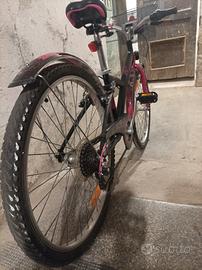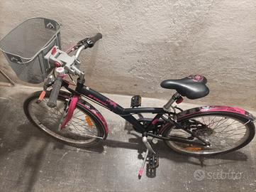 Poply 500 Children's 24" Bike, usata raramente bici città 24 pollici è provvista di parafango, cavalletto cestino,fanale anteriore e fanalino posteriore a LED, Shimano 6 velocità permettono di muoversi tranquillamente in città, su qualunque dislivello. fascia di etá 8-9 anni fino ai 12-13 altezza 1m35 > 1m65