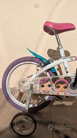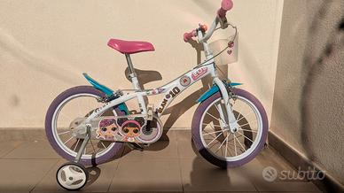 Vendo bici bambina modello LOL modello da 16 pollici usata meno di due anni per acquisto bici di taglia superiore. Disponibile con rotelle e porta bambolotto posteriore.