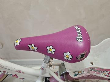 Bici bambina united flowers, 16'', bianca e rosa con fiori. Presenta segni di usura (vedi foto) ma comunque funzionante.