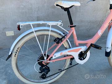 Causa inutilizzo vendo Bici Xeris per bambina 24", rosa opaco e bianco, con cambio a 6 rapporti Shimano, completa di luci e campanello, ruote 24", usata pochissimo, praticamente nuova.