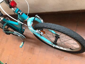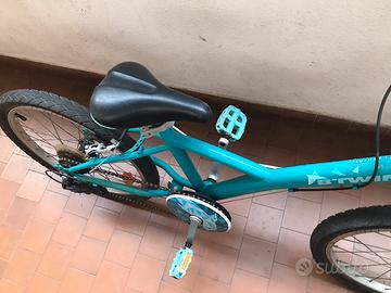 Bigi decathlon trekking btwin original 120 azzurra in ottimo stato. Usata pochissimo. Ruote 20 pollici. Adatta per bambini con altezza da 120 a 140 cm. Le ruote hanno ancora i tassellini di gomma a dimostrazione del poco utilizzo