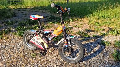 Vendo bici da bambino misura 12 pollici, ideale per età circa 3–5 anni. Colorazione sportiva nero/arancio con grafiche accattivanti. La bici è in buone condizioni generali, perfettamente funzionante e subito pronta all’uso. Telaio robusto, gomme larghe e stabili, freni anteriori e posteriori efficienti. Dotata di cavalletto e parafanghi. Segni di normale utilizzo ma nulla che ne comprometta l’utilizzo. Ideale per imparare ad andare in bici in sicurezza. Caratteristiche principali: - Ruote da 12” - Freni anteriori e posteriori - Cavalletto laterale - Parafanghi - Telaio resistente