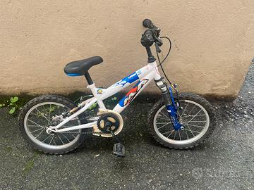 Vendo bicicletta da bambino misura 16 pollici (adatta indicativamente dai 4 ai 6 anni). La bici è robusta, dotata di forcella anteriore e copertoni tassellati in buono stato.