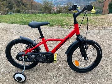 Vendo bici da bambino 4-6 anni, BTWIN 900 racing colore rosso, ruote 16 pollici. Comprata nuova e usata 6 mesi, dotata di rotelline rimovibili, con sellino e manubrio regolabile in altezza. Ideale per imparare.