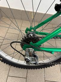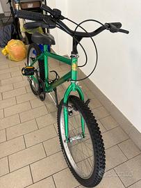 Vendo bicicletta bambino, mountain bike restaurata e in ottimo stato. Sella, pedali, catena, pneumatici, manopole, nuovi! Riverniciata completamente e riportata allo stato originale. Ruote da 20” Cambio shimano a 5 rapporti.