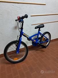 bici decathon 16" di colore blu.