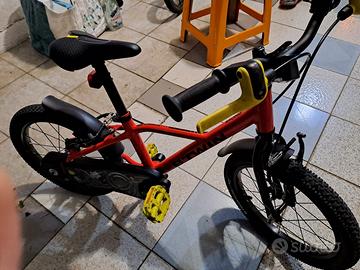 BICI 16 POLLICI CON TELAIO IN ALLUMINIO, IN OTTIME CONDIZIONI, USATA SPORADICAMENTE SOLO D'ESTATE PER CIRCA 2 ANNI. PRESENTE LUCE ANTERIORE, POSTERIORE, CAMPANELLO E CAVALLETTO., NO ROTELLE.PRESENTI SOLO LIEVI GRAFFI LEVE FRENI. DISPONIBILE PER QUALSIASI PROVA. NUOVA COSTA €210, VENDO A €120. SOLO CONSEGNA DI PERSONA