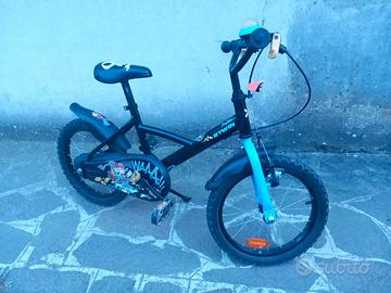 Bici Bambino Decathlon ruota 16 pollici ideale da 5 a 8 anni, ottime condizioni , completa di parafanghi e campanello. Versione Btwin nera e azzurra Pirat Bike
